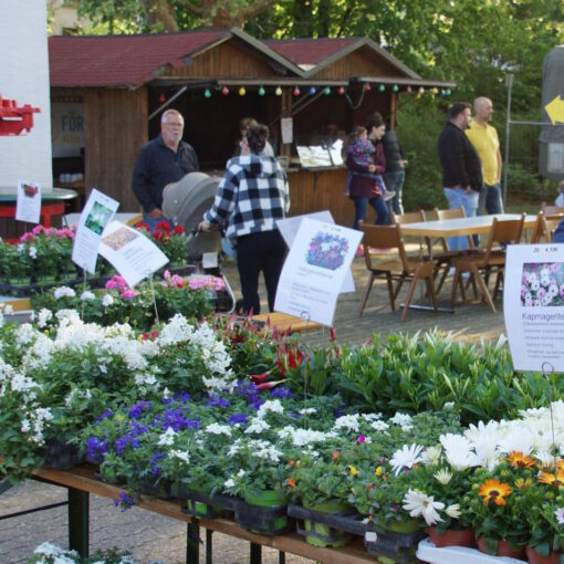 Am letzten Samstag richtete der Heimatverein seinen alljährlichen Blumenmarkt aus. Auch der Wettergott spielte wieder mit und die zahlreichen Besucher konnten bei teils strahlendem Sonnenschein in Ruhe zwischen Geranien, Petunien und eine große Vielfalt weiterer Blütenpflanzen auswählen.