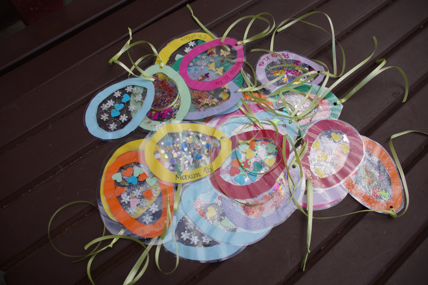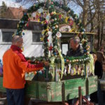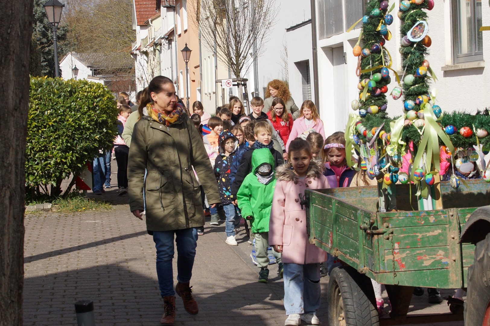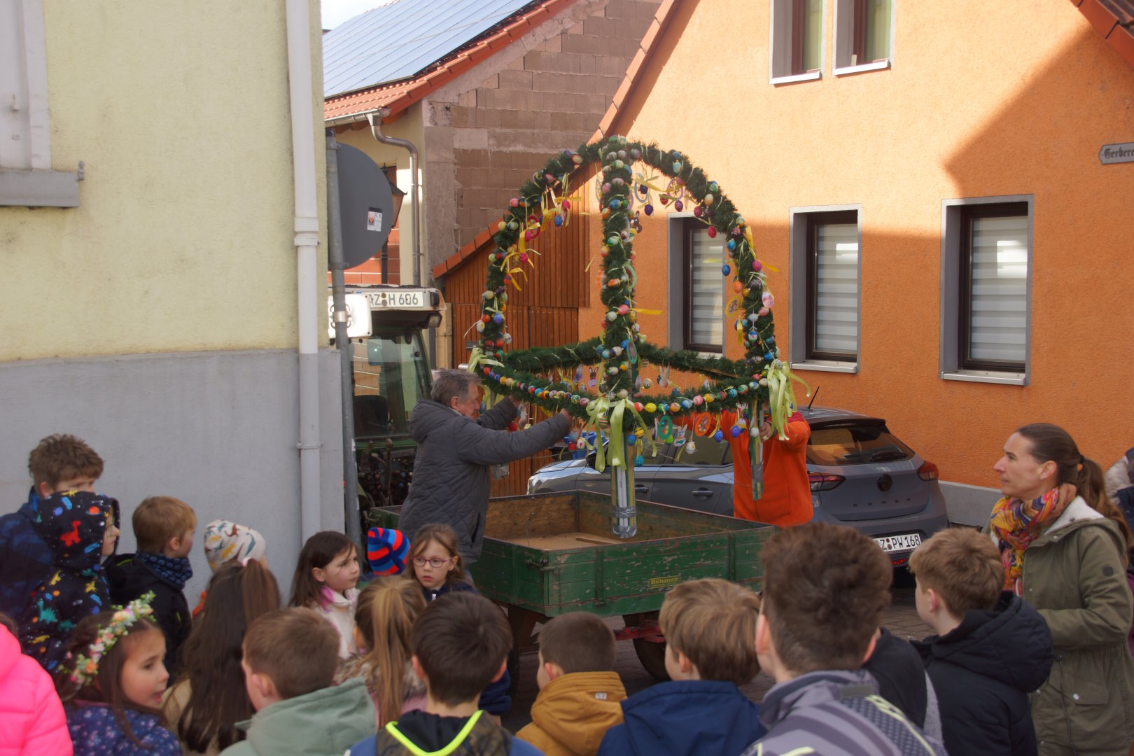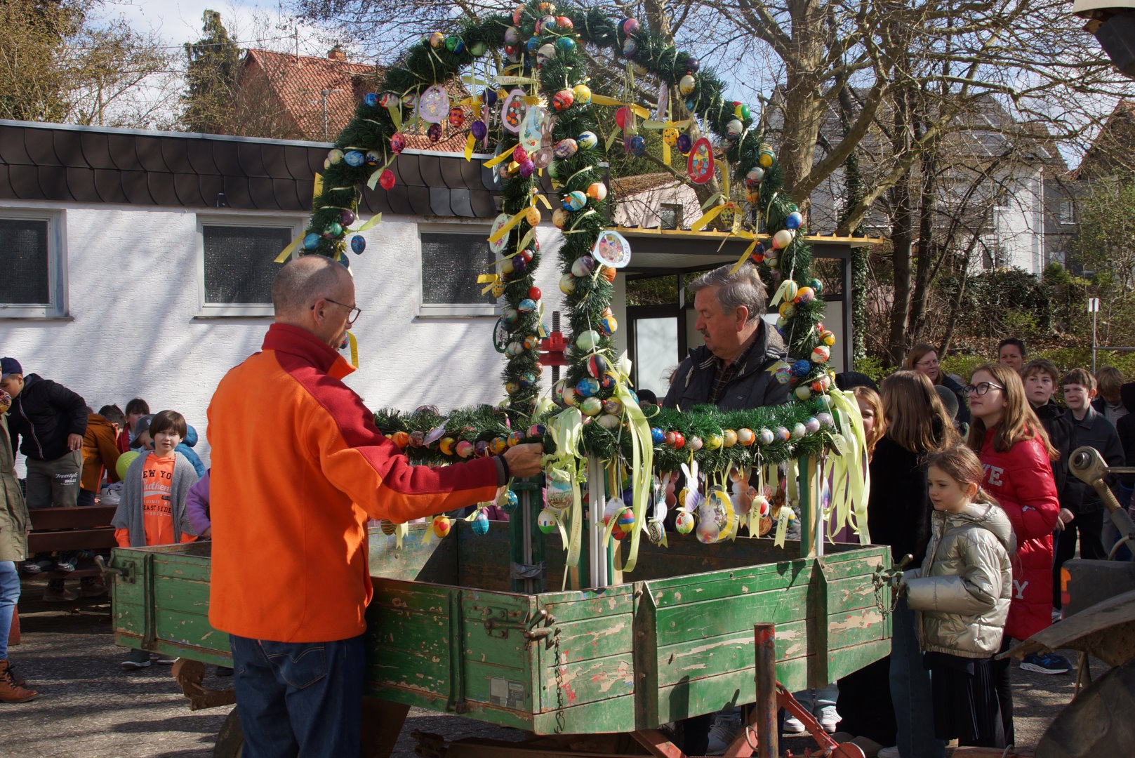 Als „Hausaufgabe“ für die Osterferien bekamen die Kinder von unserem ersten Vorsitzenden Karl Heimers den Auftrag, Eltern und Großeltern das selbst gestaltete Ei am Osterbrunnen zu zeigen. Namensbänder an den Eiern verraten, welches Kind das jeweilige Ei gestaltet hat.